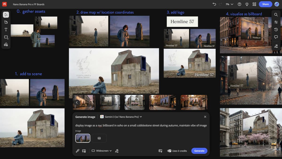Adobe ha integrado este modelo tanto en el entorno Firefly como en Photoshop, donde refuerza la herramienta Generative Fill. En Firefly, se puede utilizar para generar imágenes a partir de texto, pero también para trabajar con múltiples referencias visuales y construir tableros colaborativos a través de Firefly Boards. Esta función permite a equipos de diseño compartir conceptos, explorar variantes visuales y mantener la coherencia creativa en proyectos compartidos. Todo ello sin perder el control manual de ajustes como proporción, color, iluminación o estilo visual.