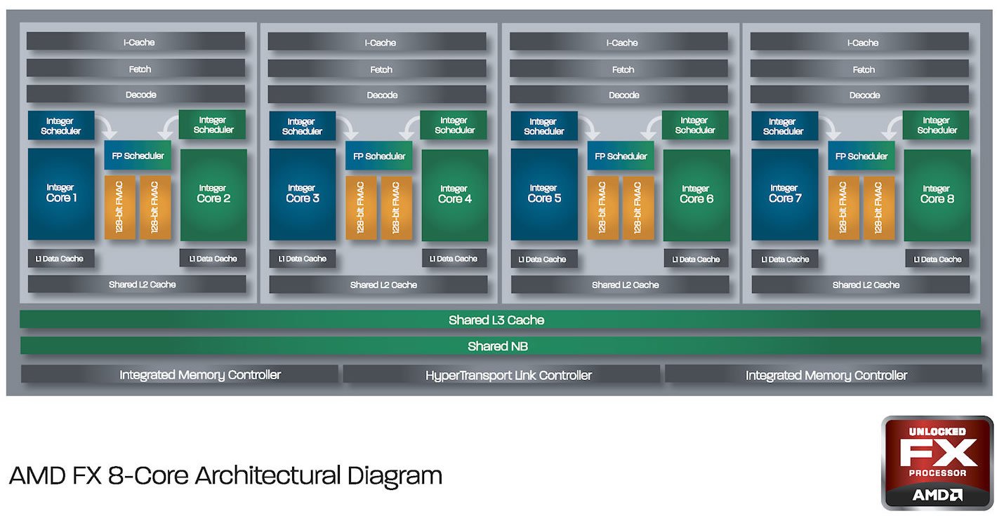 Este procesador utiliza la arquitectura Piledriver, que no es más que una revisión de la arquitectura Bulldozer. Tiene 8 núcleos, pero cada dos núcleos comparten una unidad de coma flotante y la caché L2, cuenta con 8 MB de caché L3 compartida y tiene una velocidad de 4,7 GHz en modo base y 5 GHz en modo turbo. Su TDP es de 220 vatios.