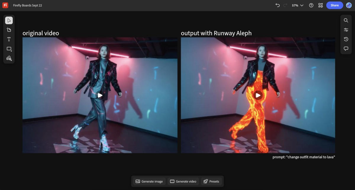 En paralelo, Adobe ha lanzado globalmente Firefly Boards, una plataforma pensada para la ideación creativa colectiva. Aquí, el enfoque ya no es la edición puntual, sino el trabajo en equipo, la exploración de conceptos y la generación de recursos desde múltiples medios. Firefly Boards integra modelos de generación de vídeo como Runway Aleph y Moonvalley Marey, junto con nuevas funciones como Presets para escenarios rápidos, Describe Image para generar texto a partir de imágenes y Generative Text Edit para reescritura contextualizada. Es una evolución del concepto de moodboard, ahora potenciado con herramientas de IA en tiempo real.